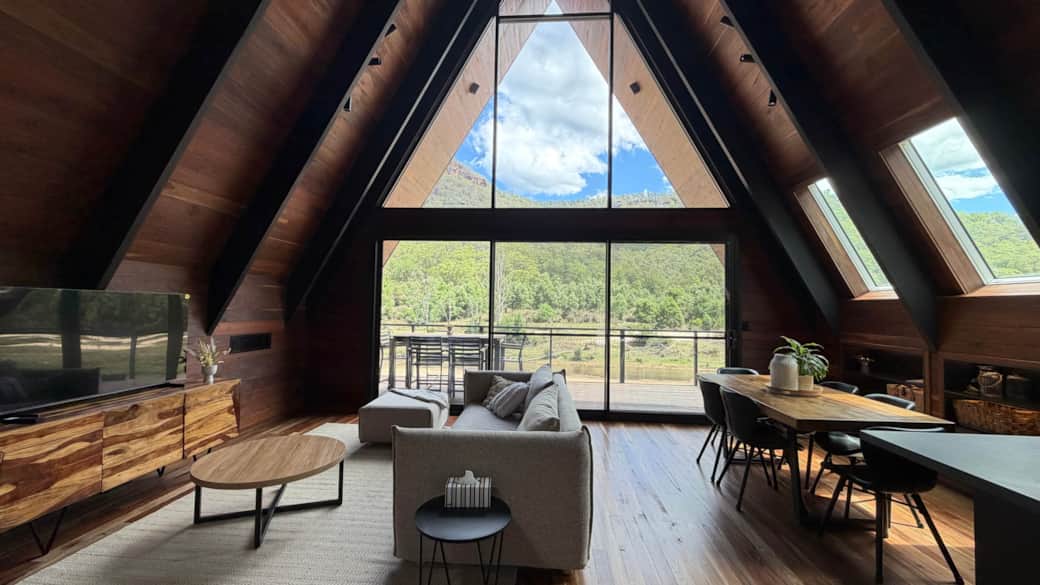 Ashwood AFrame is an exclusive luxe cabin set on 45 acres on the banks of Macdonald River. This uniquely designed retreat blends cabin vibes with modern comfort.